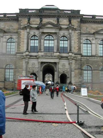 Katastrophale Zustände im Zwinger und der Gemäldegalerie. Viertausend Bilder mußten in kürzester Zeit gesichert werden - zum Glück ein Unternehmen, das erfolgreich ausging. (Aus dem Bild geht nicht hervor, dass das Innere komplett unter Wasser steht!) |